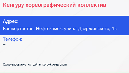 Кенгуру, хореографический коллектив по адресу Башкортостан, Нефтекамск, улица Дзержинского, 1в в дальнейшем Организация, размещена в следующих категориях: