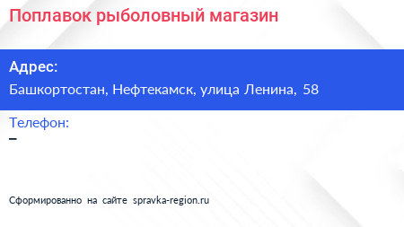 Поплавок, рыболовный магазин по адресу Башкортостан, Нефтекамск, улица Ленина, 58 в дальнейшем Организация, размещена в следующих категориях: