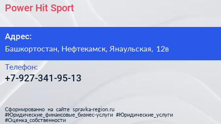 Power Hit Sport по адресу Башкортостан, Нефтекамск, Янаульская, 12в в дальнейшем Организация, размещена в следующих категориях: