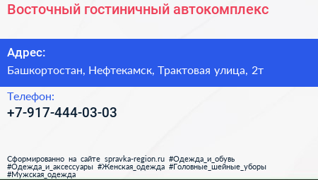 Восточный, гостиничный автокомплекс по адресу Башкортостан, Нефтекамск, Трактовая улица, 2т в дальнейшем Организация, размещена в следующих категориях:
