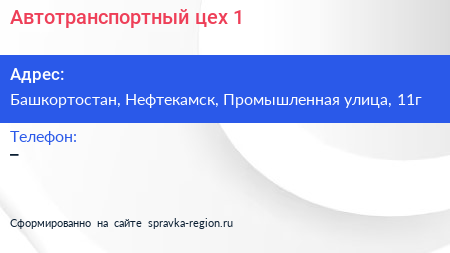 Автотранспортный цех №1 по адресу Башкортостан, Нефтекамск, Промышленная улица, 11г в дальнейшем Организация, размещена в следующих категориях: