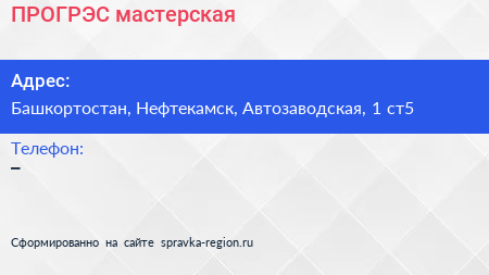ПРОГРЭС, мастерская по адресу Башкортостан, Нефтекамск, Автозаводская, 1 ст5 в дальнейшем Организация, размещена в следующих категориях: