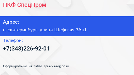 ПКФ «СпецПром» по адресу г. Екатеринбург, улица Шефская 3Ак1 в дальнейшем Организация, размещена в следующих категориях: