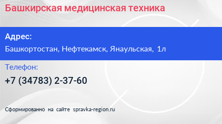 Башкирская медицинская техника по адресу Башкортостан, Нефтекамск, Янаульская, 1л в дальнейшем Организация, размещена в следующих категориях: