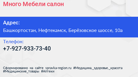Много Мебели, салон по адресу Башкортостан, Нефтекамск, Берёзовское шоссе, 10а в дальнейшем Организация, размещена в следующих категориях:
