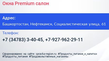 Окна Premium, салон по адресу Башкортостан, Нефтекамск, Социалистическая улица, 61 в дальнейшем Организация, размещена в следующих категориях: