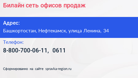 Билайн, сеть офисов продаж по адресу Башкортостан, Нефтекамск, улица Ленина, 34 в дальнейшем Организация, размещена в следующих категориях: