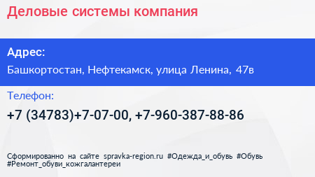 Деловые системы, компания по адресу Башкортостан, Нефтекамск, улица Ленина, 47в в дальнейшем Организация, размещена в следующих категориях: