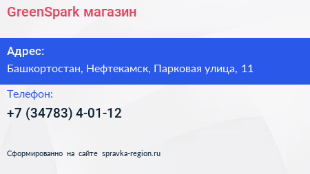 GreenSpark, магазин по адресу Башкортостан, Нефтекамск, Парковая улица, 11 в дальнейшем Организация, размещена в следующих категориях: