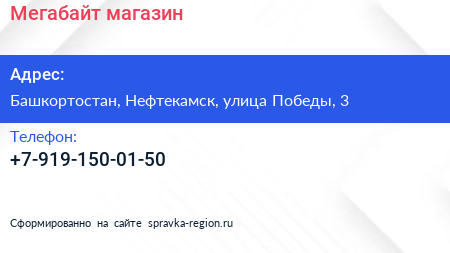 Мегабайт, магазин по адресу Башкортостан, Нефтекамск, улица Победы, 3 в дальнейшем Организация, размещена в следующих категориях: