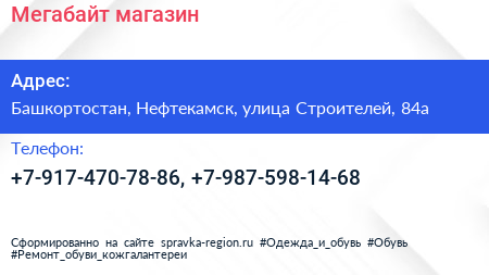 Мегабайт, магазин по адресу Башкортостан, Нефтекамск, улица Строителей, 84а в дальнейшем Организация, размещена в следующих категориях: