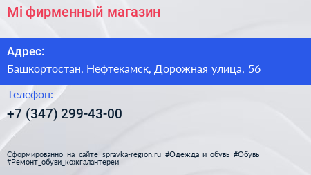 Mi, фирменный магазин по адресу Башкортостан, Нефтекамск, Дорожная улица, 56 в дальнейшем Организация, размещена в следующих категориях: