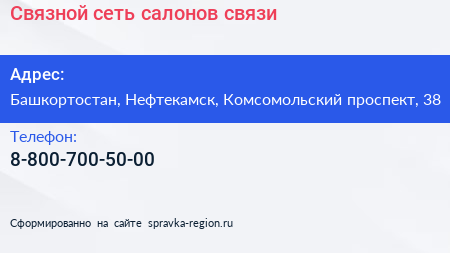 Связной, сеть салонов связи по адресу Башкортостан, Нефтекамск, Комсомольский проспект, 38 в дальнейшем Организация, размещена в следующих категориях: