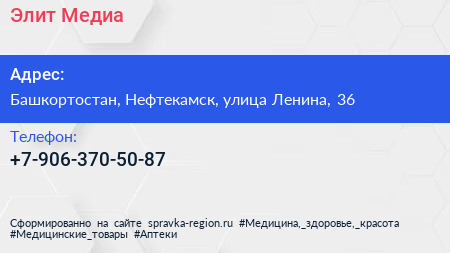 Элит Медиа по адресу Башкортостан, Нефтекамск, улица Ленина, 36 в дальнейшем Организация, размещена в следующих категориях: