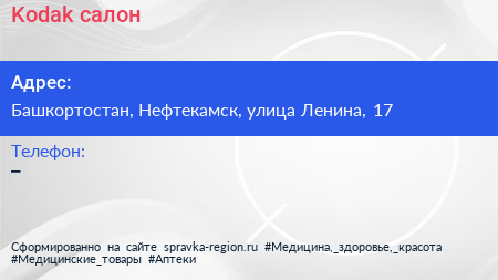 Kodak, салон по адресу Башкортостан, Нефтекамск, улица Ленина, 17 в дальнейшем Организация, размещена в следующих категориях: