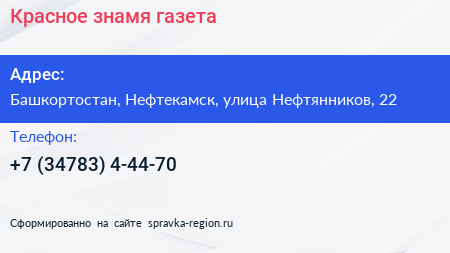 Красное знамя, газета по адресу Башкортостан, Нефтекамск, улица Нефтянников, 22 в дальнейшем Организация, размещена в следующих категориях: