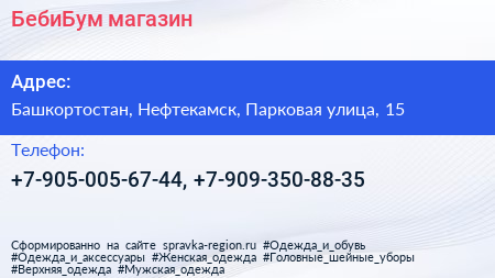 БебиБум, магазин по адресу Башкортостан, Нефтекамск, Парковая улица, 15 в дальнейшем Организация, размещена в следующих категориях: