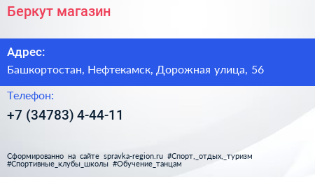 Беркут, магазин по адресу Башкортостан, Нефтекамск, Дорожная улица, 56 в дальнейшем Организация, размещена в следующих категориях: