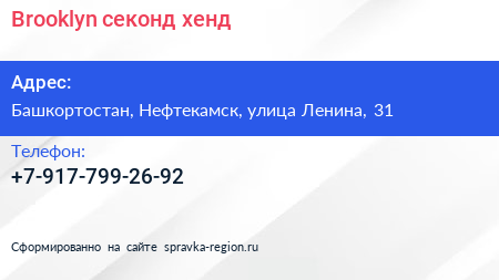 Brooklyn, секонд-хенд по адресу Башкортостан, Нефтекамск, улица Ленина, 31 в дальнейшем Организация, размещена в следующих категориях: