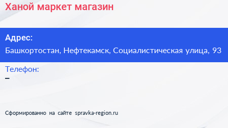 Ханой-маркет, магазин по адресу Башкортостан, Нефтекамск, Социалистическая улица, 93 в дальнейшем Организация, размещена в следующих категориях: