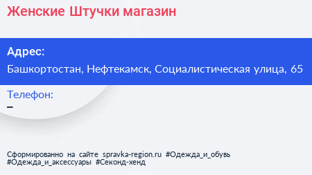 Женские Штучки, магазин по адресу Башкортостан, Нефтекамск, Социалистическая улица, 65 в дальнейшем Организация, размещена в следующих категориях: