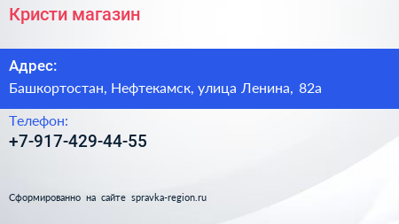 Кристи, магазин по адресу Башкортостан, Нефтекамск, улица Ленина, 82а в дальнейшем Организация, размещена в следующих категориях: