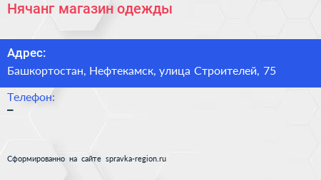 Нячанг, магазин одежды по адресу Башкортостан, Нефтекамск, улица Строителей, 75 в дальнейшем Организация, размещена в следующих категориях:
