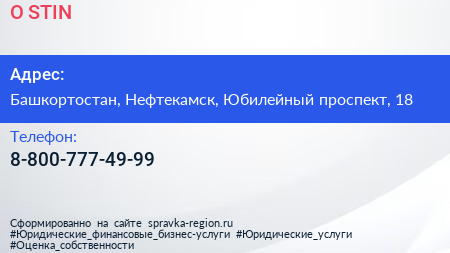 O`STIN по адресу Башкортостан, Нефтекамск, Юбилейный проспект, 18 в дальнейшем Организация, размещена в следующих категориях: