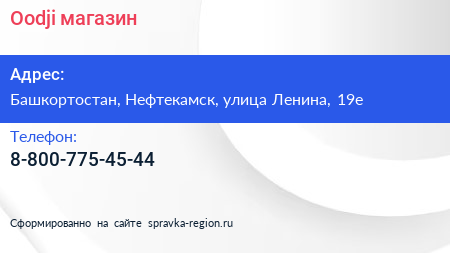 Oodji, магазин по адресу Башкортостан, Нефтекамск, улица Ленина, 19е в дальнейшем Организация, размещена в следующих категориях: