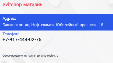Svitshop, магазин по адресу Башкортостан, Нефтекамск, Юбилейный проспект, 18 в дальнейшем Организация, размещена в следующих категориях: