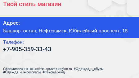 Твой стиль, магазин по адресу Башкортостан, Нефтекамск, Юбилейный проспект, 18 в дальнейшем Организация, размещена в следующих категориях:
