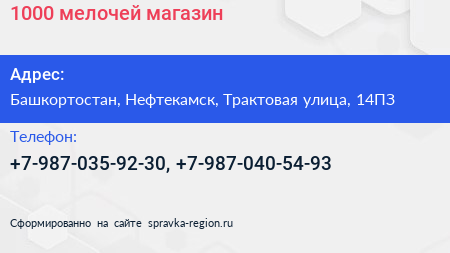 1000 мелочей, магазин по адресу Башкортостан, Нефтекамск, Трактовая улица, 14ПЗ в дальнейшем Организация, размещена в следующих категориях: