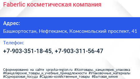 Faberlic, косметическая компания по адресу Башкортостан, Нефтекамск, Комсомольский проспект, 41 в дальнейшем Организация, размещена в следующих категориях: