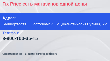 Fix Price, сеть магазинов одной цены по адресу Башкортостан, Нефтекамск, Социалистическая улица, 22 в дальнейшем Организация, размещена в следующих категориях: