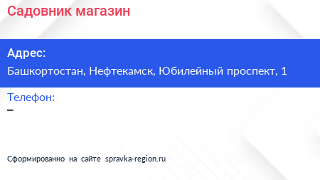 Садовник, магазин по адресу Башкортостан, Нефтекамск, Юбилейный проспект, 1 в дальнейшем Организация, размещена в следующих категориях: