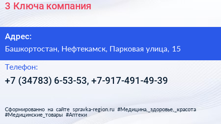 3 Ключа, компания по адресу Башкортостан, Нефтекамск, Парковая улица, 15 в дальнейшем Организация, размещена в следующих категориях: