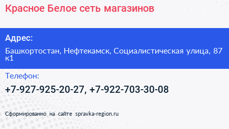 Красное & Белое, сеть магазинов по адресу Башкортостан, Нефтекамск, Социалистическая улица, 87 к1 в дальнейшем Организация, размещена в следующих категориях: