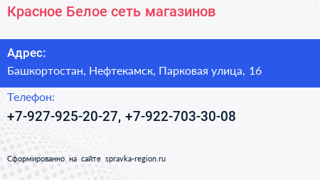Красное & Белое, сеть магазинов по адресу Башкортостан, Нефтекамск, Парковая улица, 16 в дальнейшем Организация, размещена в следующих категориях: