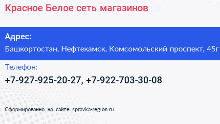 Красное & Белое, сеть магазинов по адресу Башкортостан, Нефтекамск, Комсомольский проспект, 45г в дальнейшем Организация, размещена в следующих категориях: