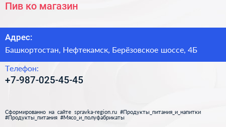 Пив.ко, магазин по адресу Башкортостан, Нефтекамск, Берёзовское шоссе, 4Б в дальнейшем Организация, размещена в следующих категориях: