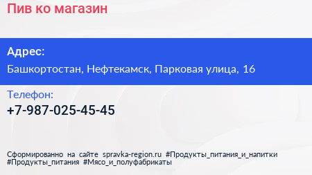 Пив.ко, магазин по адресу Башкортостан, Нефтекамск, Парковая улица, 16 в дальнейшем Организация, размещена в следующих категориях: