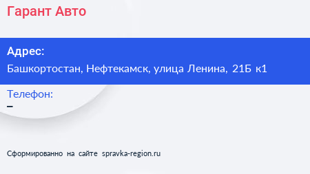 Гарант Авто по адресу Башкортостан, Нефтекамск, улица Ленина, 21Б к1 в дальнейшем Организация, размещена в следующих категориях: