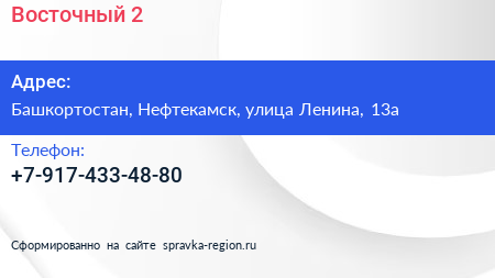 Восточный-2 по адресу Башкортостан, Нефтекамск, улица Ленина, 13а в дальнейшем Организация, размещена в следующих категориях: