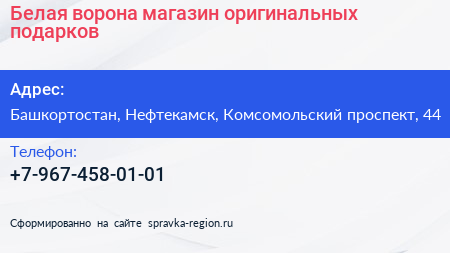 Белая ворона, магазин оригинальных подарков по адресу Башкортостан, Нефтекамск, Комсомольский проспект, 44 в дальнейшем Организация, размещена в следующих категориях: