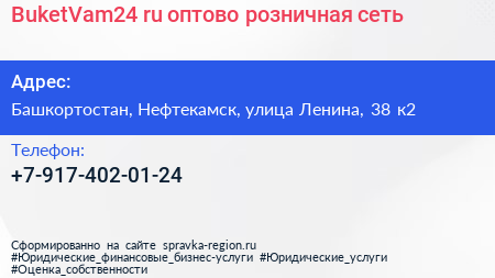 BuketVam24.ru, оптово-розничная сеть по адресу Башкортостан, Нефтекамск, улица Ленина, 38 к2 в дальнейшем Организация, размещена в следующих категориях: