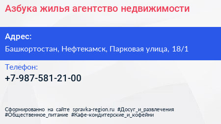 Азбука жилья, агентство недвижимости по адресу Башкортостан, Нефтекамск, Парковая улица, 18/1 в дальнейшем Организация, размещена в следующих категориях: