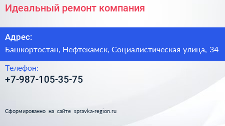 Идеальный ремонт, компания по адресу Башкортостан, Нефтекамск, Социалистическая улица, 34 в дальнейшем Организация, размещена в следующих категориях: