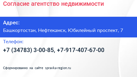 Согласие, агентство недвижимости по адресу Башкортостан, Нефтекамск, Юбилейный проспект, 7 в дальнейшем Организация, размещена в следующих категориях: