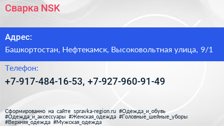 Сварка.NSK по адресу Башкортостан, Нефтекамск, Высоковольтная улица, 9/1 в дальнейшем Организация, размещена в следующих категориях: