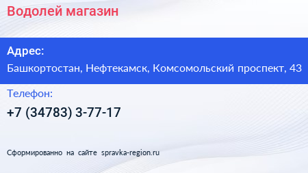 Водолей, магазин по адресу Башкортостан, Нефтекамск, Комсомольский проспект, 43 в дальнейшем Организация, размещена в следующих категориях: